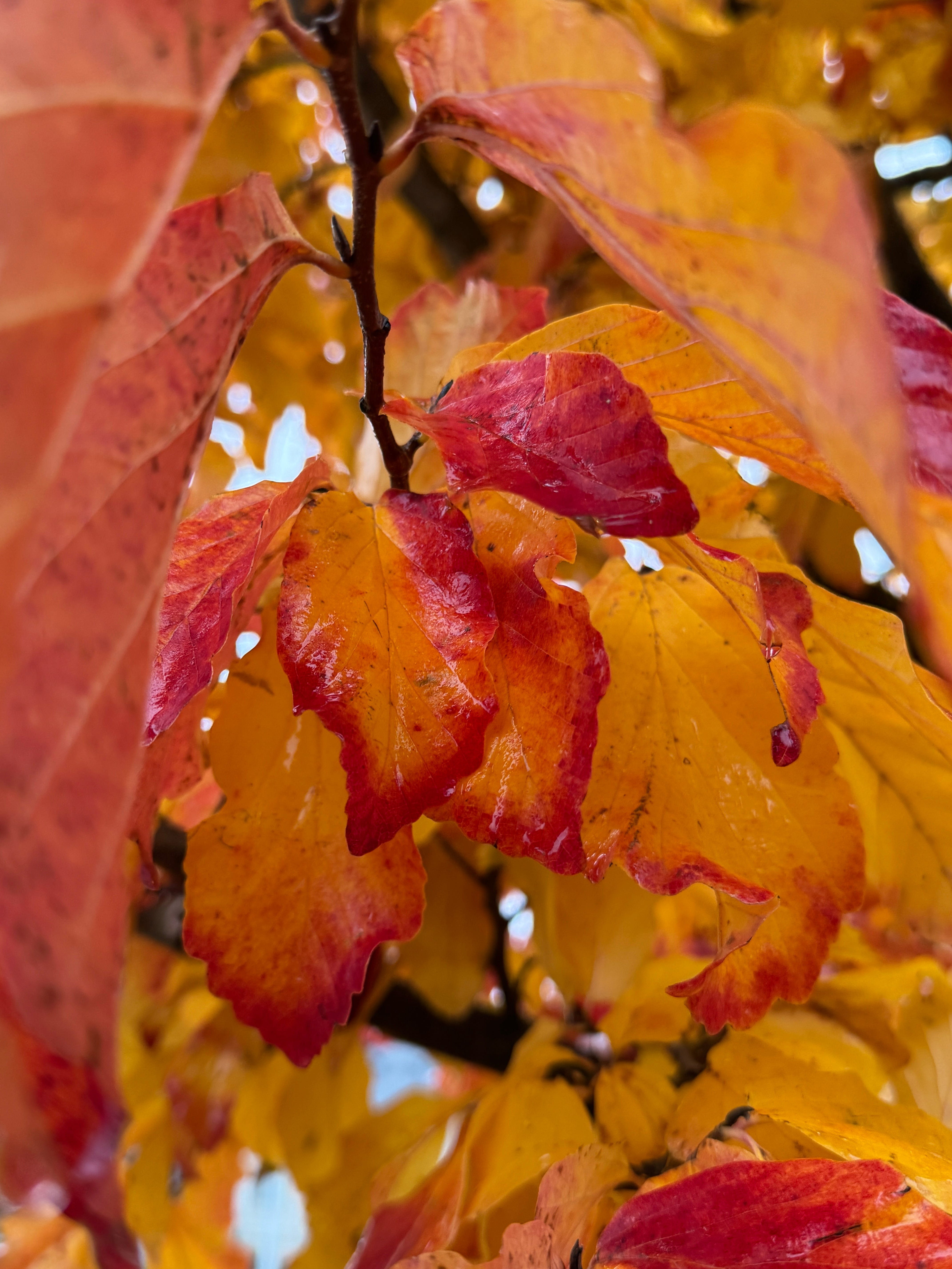 This morning I walked around the neighborhood taking pictures of gorgeous red and orange leaves, half on the ground and half on the tree.
